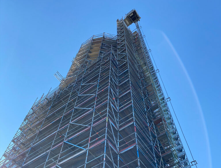 Les ascenseurs sont ancrés dans les règles de l’art, équipés de tous les dispositifs de sécurité nécessaires et intégrés sans difficulté au fonctionnement du chantier en cours – y compris les plateformes de transfert, les accès et les dispositifs de protection. Le transport des outils, des matériaux et du personnel devient ainsi planifiable, sûr et nettement plus efficace.